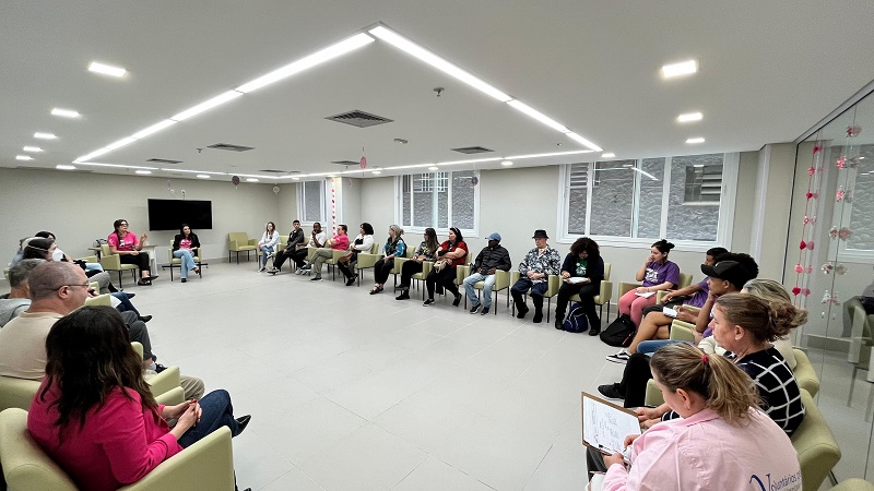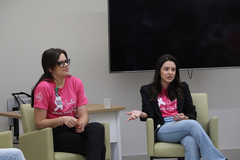 Nesta segunda-feira, 7 de outubro, começaram atividades alusivas ao Outubro Rosa no Hospital Conceição, roda de conversa no Centro de Oncologia e Hematologia. O primeiro encontro abordou o tema “Prevenção através da alimentação e rastreamento”, com a nutricionista Tessa Guimarães e a médica mastologista Camilla do Valle Pereira. O objetivo é conscientizar a população e esclarecer dúvidas a respeito do assunto.