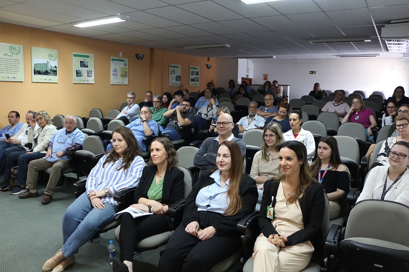 Também participaram da mesa de abertura o gerente de Administração do HCR, Carlos Roberto da Silva Xavier, o responsável técnico do HCR, Luiz Ronaldo Huber, e o coordenador do evento, Guilherme Venturini.