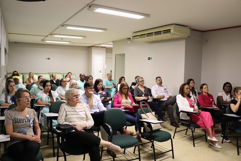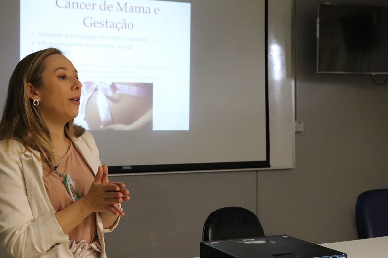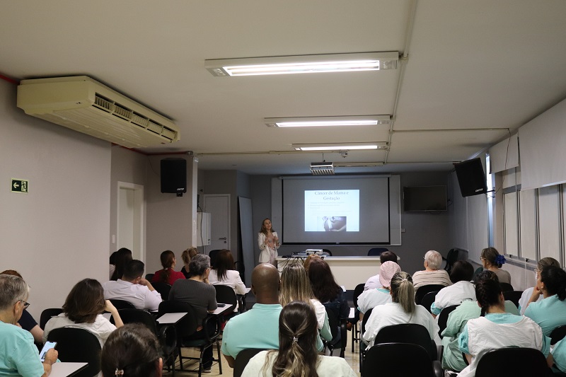 Estavam presentes no evento o gerente de Administração do HFE, Cláudio Silva, e o gerente de Internação, João Pedro Hoefel. As palestras foram ministradas pela mastologista do GHC Juliane Dal Vesco, com os temas “Prevenção e o câncer de mama” e “A gestação e o câncer de mama”.