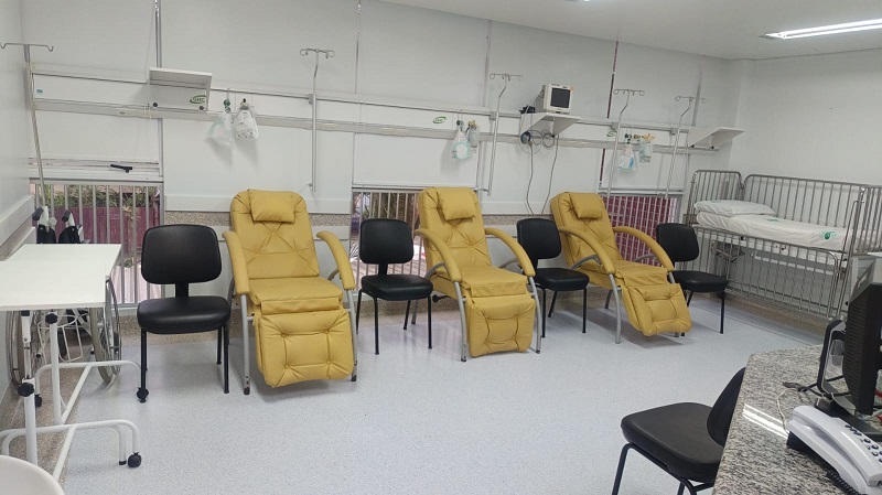 A gerente esclarece ainda que o desafio nesse momento é organizar uma refeição/lanche para este público, já que a medicação pode durar horas e é um processo que pode ser cansativo para a criança. A sala infusões funcionará nas quintas e sextas-feiras à tarde a partir de encaminhamentos da equipe assistencial. “A criança não pode fazer medicação em qualquer lugar, ela precisa ter um hospital voltado para ela, com brinquedo, recreação, lanchinho e espaço lúdico”, reforça Laís. Ela ressalta que a criança não é um adulto pequeno, por isso precisa ter uma estrutura voltada para ela.