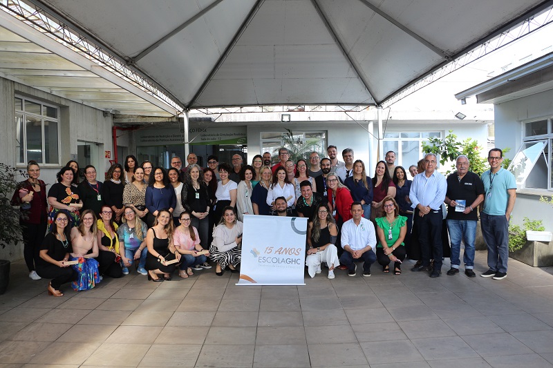 Na última sexta-feira, 25 de outubro, foi realizada uma confraternização pelos 15 anos da Escola GHC, com o objetivo de oportunizar um momento de reencontros de egressos, professores, estudantes, trabalhadoras e trabalhadores e homenagear os professores que atuam e atuaram nos mais diversos cursos da Escola GHC ao longo desse período.