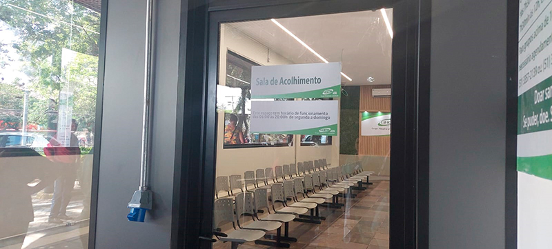 A sala de acolhimento está aberta de segunda-feira a domingo, das 6h às 20h.
