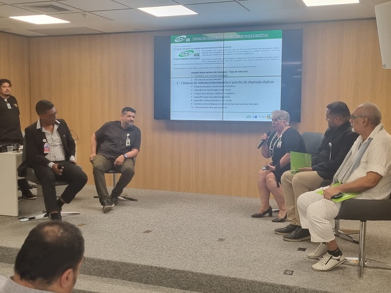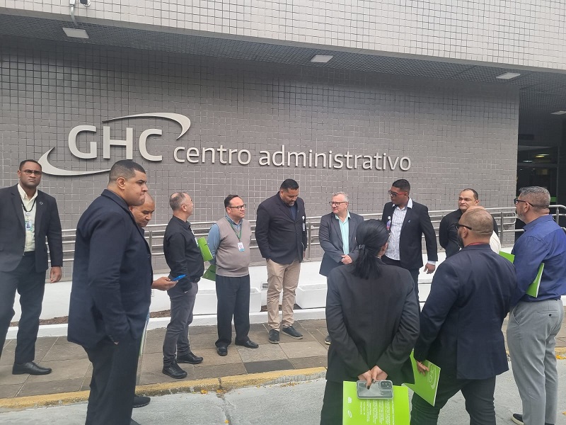 O evento, que contou com a presença do coordenador de segurança hospitalar da entidade sindical, Paulo Xavier, proporcionou um momento de networking e troca de experiências entre os participantes. Estiveram também presentes o gerente de Participação Social e Diversidade do GHC, Eduardo Freire, o gerente de Administração do HCR, Carlos Xavier, a coordenadora de Hotelaria do Hospital Nossa Senhora da Conceição, Leda Bertamoni, o líder comunitário Jorge Mirim e o gerente de Administração do HNSC, Alvarim Severo. Após a reunião de trabalho, os participantes realizam uma visita técnica ao Centro de Oncologia e Hematologia, ao Hospital Criança Conceição e ao HNSC. Ao final, conversaram com o diretor-presidente presidente do GHC, Gilberto Barichello, sobre as demandas relativas à segurança hospitalar.