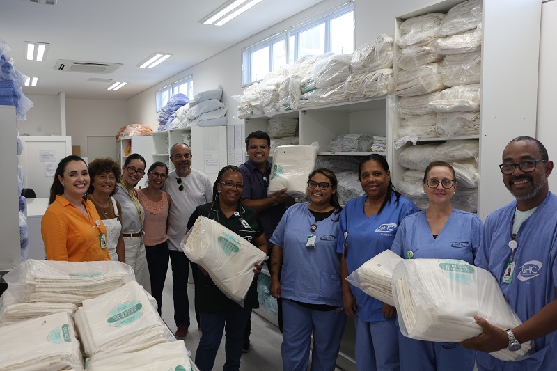 Nesta sexta-feira, 29 de novembro, a Cooperativa Justa Trama entregou, no Hospital Criança Conceição, mais uma remessa de lençóis de algodão orgânico para o GHC. A entrega do material é fruto do contrato firmado, em março deste ano, entre o Grupo e a Cooperativa, com o objetivo de fornecimento de peças de enxovais hospitalares a partir de algodão orgânico agroecológico. Ao todo, 600 lençóis e 100 fronhas foram entregues.