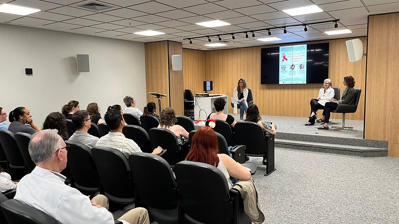 Ana Paula Brun, que compôs o debate, é formada em Gestão Hospitalar pela faculdade do GHC e utiliza sua história de vida como Pessoa que Vive com HIV para conscientizar e educar, com o propósito de combater o estigma e promover a inclusão. Ela compartilhou sua história e trouxe elementos importantes sobre o cuidado às mulheres com HIV.