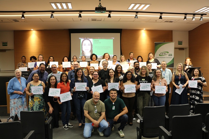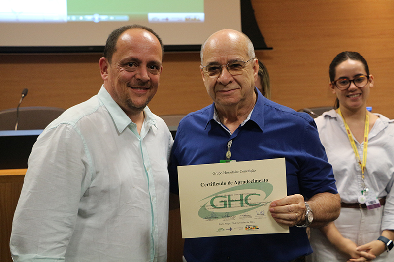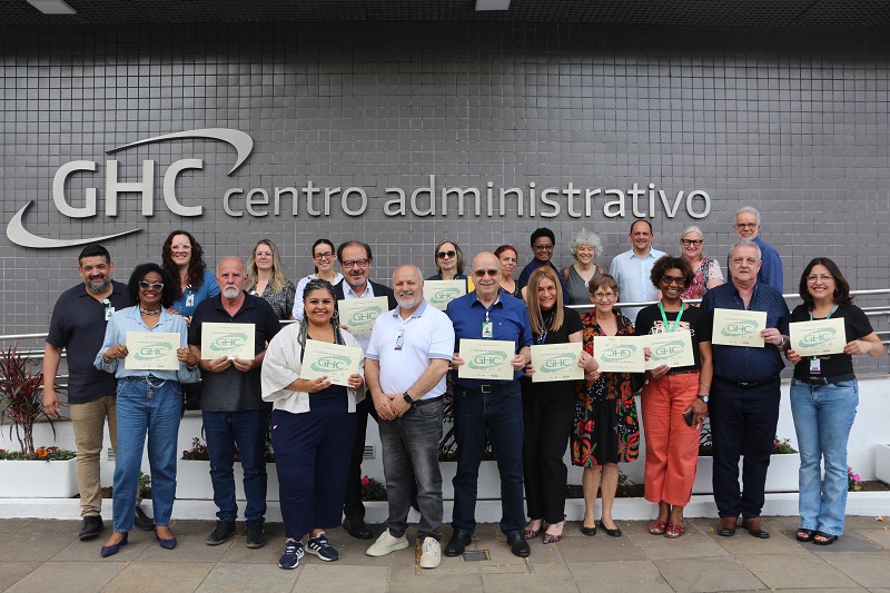 O evento contou com a presença da diretora de Inovação, Gestão do Trabalho e Educação do GHC, Quelen Silva, do diretor de Atenção à Saúde do GHC, Luís Antônio Benvegnú, do diretor administrativo e financeiro, João Motta, e da gerente de Gestão de Pessoas do GHC, Lisiane Vieira dos Santos.