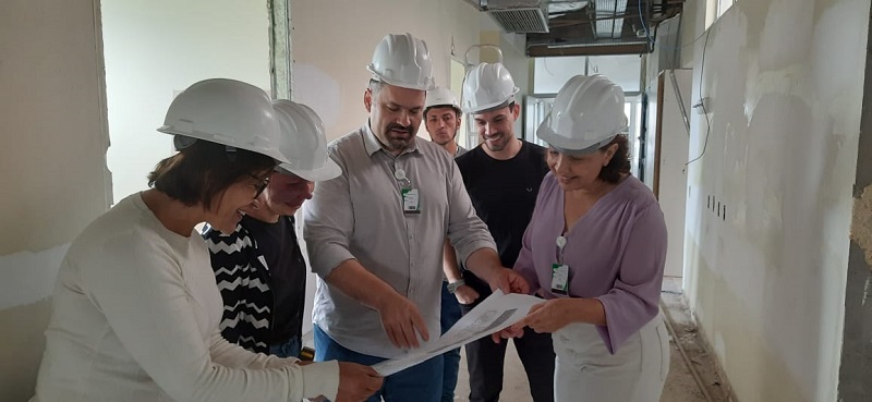 Na manhã de ontem, 16 de dezembro, no Hospital Fêmina (HF), os gerentes da Unidade de Internação, Niva Martinez, e de Administração, Cláudio Silva, realizaram uma visita de acompanhamento à obra de reforma da Emergência da instituição, localizada no térreo. O engenheiro Luís Henrique Moreira, fiscal do contrato, também acompanhou à vistoria.