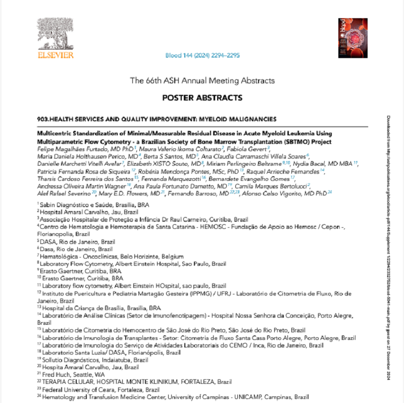 Em novembro de 2024, trabalhadores do setor de Imunofenotipagem do Laboratório de Análises Clínicas do Hospital Nossa Senhora da Conceição (LAC/HNSC) realizaram a publicação do artigo, “Padronização multicêntrica da doença residual mínima/mensurável na leucemia mieloide aguda usando citometria de fluxo multiparamétrica — um projeto da Sociedade Brasileira de Transplante de Medula Óssea”, na revista American Society of Hematology.