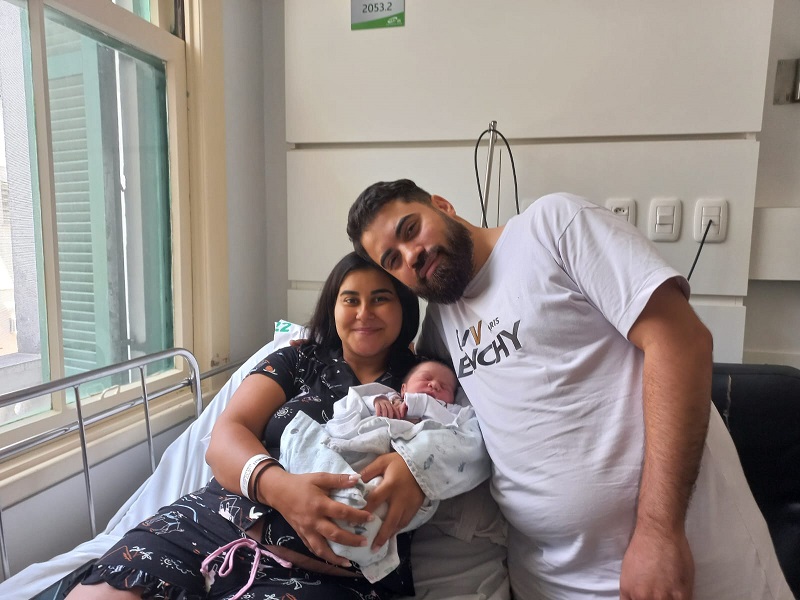 O ano novo começou de um jeito inusitado para a auxiliar administrativa Talita Rodrigues Almeida, de 23 anos. Nas primeiras horas após a virada de 2024 para 2025, ela entrou em trabalho de parto no Hospital Nossa Senhora da Conceição e, exatamente, às 2h06, o menino Gael chegou ao mundo com 3.380 quilos e 49 centímetros, de parto normal. Quando ele nasceu, nem ela e nem o pai, o designer gráfico Renã Alves Leite de Oliveira, de 30 anos, imaginavam que seria o primeiro porto-alegrense do ano. “Ficamos muito felizes de o nosso primeiro filho ter sido o primeiro a nascer aqui na Capital”, contou o pai, com um sorriso estampado no rosto. Talita, também contente apesar das muitas horas sem dormir, agradeceu os cuidados e o acolhimento de toda a equipe do HNSC. “Fui muito bem atendida por todos aqui”, salientou.