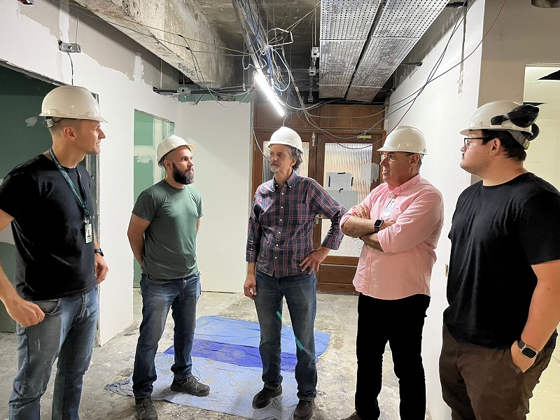 Nesta quarta-feira, 15/01, o diretor Administrativo e Financeiro do Grupo Hospitalar Conceição (GHC), João Motta, e o gerente de Engenharia e Manutenção do Grupo, Elifas Kerller Simas, acompanhados dos engenheiros Anderson Policarpo, coordenador de Projetos e Obras, e Leandro Schneider, coordenador de Manutenção, realizaram uma visita de inspeção às obras em andamento no Hospital Nossa Senhora da Conceição (HNSC) e no Hospital Criança Conceição (HCC). A principal delas, orçada em R$ 16,9 milhões, prevê a reforma das unidades de Internação do 4º andar do HNSC e terá a primeira etapa concluída no final de 2025 e o restante até julho de 2026.