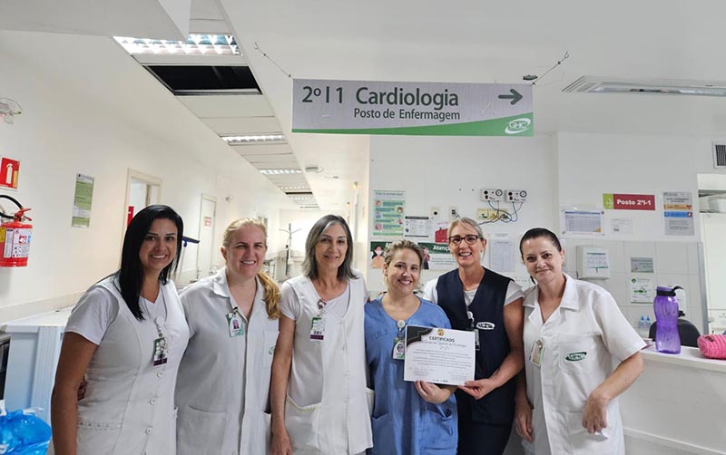 Nos dias 7 a 14 de fevereiro, a Gestão de Riscos Assistencial do Hospital Conceição realizou a entrega dos certificados pelos excelentes resultados obtidos no Projeto Planejamento Estratégico com Foco na Segurança do Paciente para as unidades da Cardiologia (2I1 e UCE) e para a Neurologia (2I2 e U-AVC), que trabalharam com foco na prevenção de quedas e de lesão por pressão, respectivamente.