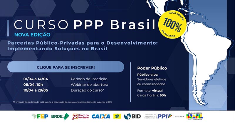 Ao longo de cinco módulos, serão abordadas questões como as melhores práticas de cada etapa do ciclo de um projeto de PPP, como aumentar a eficiência, reduzir custos excessivos e atrasos e estudos de caso nacionais e internacionais. O público-alvo são gestores públicos e privados que atuam na área de infraestrutura e prestação de serviços.
