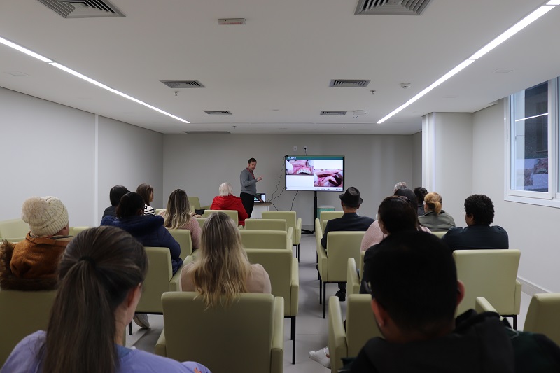 Na manhã desta sexta-feira, 30 de maio, ocorreu no Espaço de Convivência do Centro de Oncologia e Hematologia do Grupo Hospitalar Conceição (COH/GHC), uma atividade alusiva ao Maio Vermelho, que abordou a importância da prevenção e do diagnóstico precoce do câncer de boca. O evento foi organizado pela coordenação do serviço de Odontologia do GHC. Na ocasião, os odontólogos da instituição Maurício Roth Volkweis e Roberta Garcia palestraram sobre o câncer de boca.