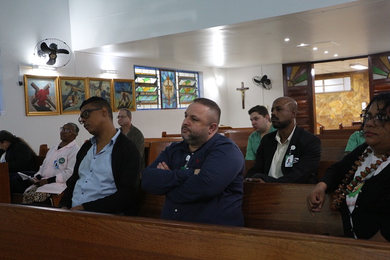 A gerência de Participação Social e Diversidade do Grupo Hospitalar Conceição promoveu um debate sobre as enchentes de maio de 2024, intitulado “Enchente/RS- o que vivemos e aprendemos”, no Espaço Inter-religioso do Hospital Nossa Senhora da Conceição (HNSC).
