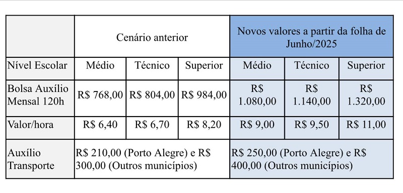 A Diretoria do Grupo Hospitalar Conceição (GHC) reajustará os valores da bolsa-auxílio e do auxílio-transporte dos estagiários extracurriculares que atuam na instituição. A medida passa a contar já a partir deste mês e beneficiará 182 jovens, sendo 86 de nível médio, 23 de nível técnico e 73 oriundos do ensino superior. A diretora de Inovação, Gestão do Trabalho e Educação do Grupo, Quelen Tanize Alves da Silva, ressalta que a empresa considera o estágio extracurricular uma importante estratégia de inserção de jovens no mercado de trabalho. “Dentro da política de inclusão social do GHC, essa é uma modalidade bastante relevante, pois associa ensino-aprendizagem e responsabilidade social”, reforça ela. Na mesma linha, a gerente de Gestão de Pessoas, Julianna Alves Spall Valente Lopes, salienta que os estagiários, por atuarem em diversas áreas, contribuem com o fazer e auxiliam no desenvolvimento de processos e nas rotinas de prestação de serviços, sendo partes integrantes dos sistemas de trabalho. O último reajuste dos valores para estágio extracurricular havia ocorrido em novembro de 2019.
