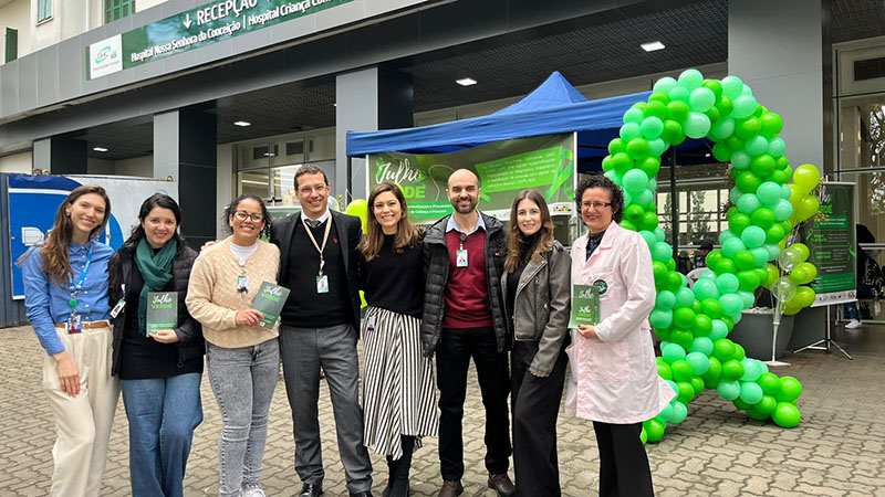 Nessa terça-feira, 8 de julho, integrantes das equipes do ambulatório de Fonoaudiologia, Otorrinolaringologia e Odontologia do Grupo Hospitalar Conceição (GHC) realizaram, pela manhã, uma entrega de panfletos sobre o Julho Verde, mês de conscientização e prevenção do câncer de cabeça e pescoço, com o objetivo de alertar a população sobre esse assunto. À tarde, no auditório do Centro de Oncologia e Hematologia do Hospital Nossa Senhora da Conceição (COH/ HNSC), ocorreu a ação de conscientização para funcionários e residentes do GHC, com palestras acerca da prevenção, diagnóstico, tratamento e reabilitação para o tipo de câncer.
