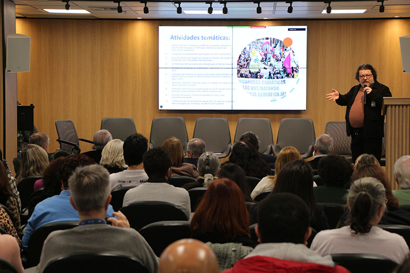 O Grupo Hospitalar Conceição lançou nesta sexta-feira, 25 de julho, no Auditório do Centro de Oncologia e Hematologia, o 1º Congresso do GHC. O evento ocorrerá de 28 a 30 de agosto, no Centro de Eventos da FIERGS e contará com a participação de palestrantes e especialistas do Brasil e do Exterior. Com o tema Emergências climáticas, cuidados integrados e participação social: desafios para o fortalecimento do SUS, o encontro tem o objetivo de sistematizar experiências prévias, desenhar processos de trabalho e prospectar iniciativas que permitam antecipar ações, mitigar efeitos, desencadear iniciativas imediatas e produzir mudanças nos fluxos assistenciais e na cultura dos territórios. Na ocasião, o coordenador do evento, Alcindo Ferla, apresentou a proposta do congresso, programação e também tornou aberto o período para inscrições gratuitas e para submissão de trabalhos.