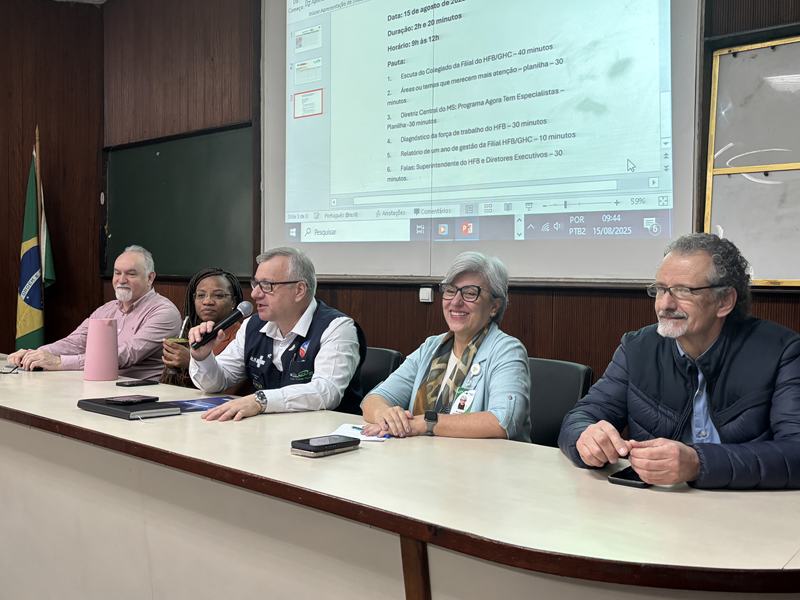 Outro momento relevante, apresentado por Barichello, foi a apresentação do Programa “Agora Tem Especialistas”, do Governo Federal, que visa reduzir o tempo de espera por consultas, exames e cirurgias, que deve ser alinhado e priorizado nas ações também do HFB. “Esse sistema será prioridade em todos os nossos atendimentos. Precisamos reduzir o tempo de execução, alinhar os passos, construir juntos e acelerar, aproveitando as ferramentas e processos de tecnologia disponíveis”.