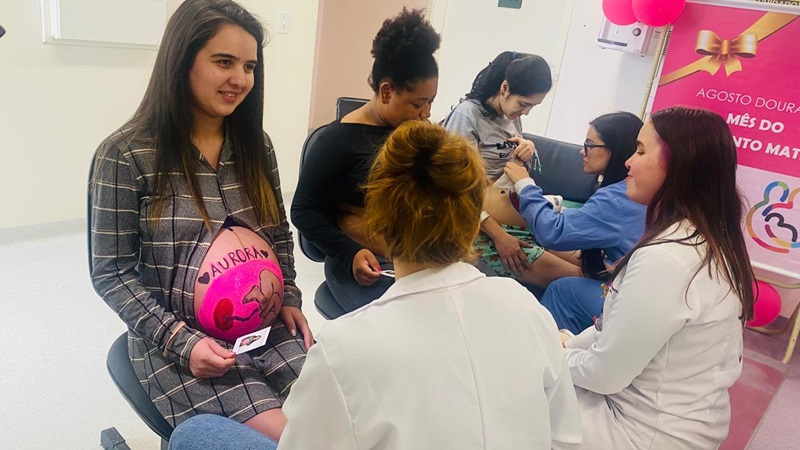 Dinara Dornfeld, coordenadora dos programas de residência envolvidos na ação, explica que a pintura busca proporcionar à gestante um momento de bem-estar, relaxamento e fortalecimento do vínculo mãe-bebê, além de contribuir para a redução da ansiedade, promover a autoestima e criar memórias afetivas da gravidez. As pacientes com gestação de alto risco internadas do Hospital Nossa Senhora da Conceição (HNSC) também participarão da atividade dia 25 de agosto. Além das oficinas de pintura do ventre materno, a programação do Agosto Dourado prevê rodas de conversa sobre amamentação com as usuárias do GHC.