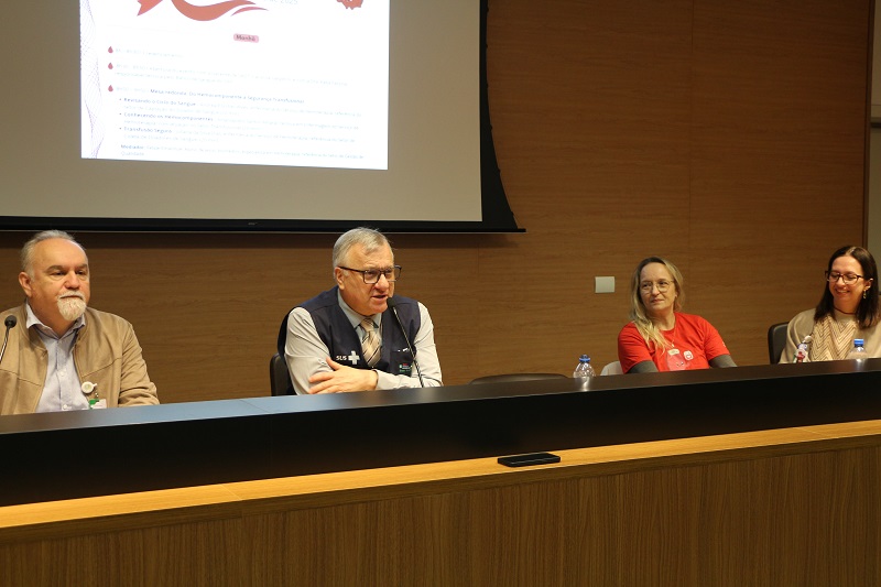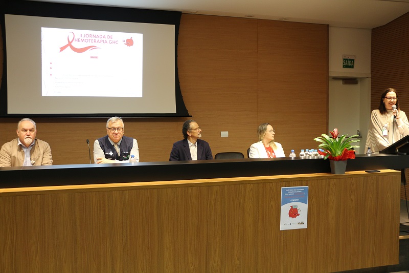 A mesa de abertura contou com a presença do diretor-presidente do GHC, Gilberto Barichello, do diretor de Atenção à Saúde, Luís Antônio Benvegnú, do diretor Administrativo e Financeiro, João Motta, da gerente de Serviços Auxiliares de Diagnóstico e Tratamento, Carolina Gasperin, e da responsável técnica do Banco de Sangue do GHC, Kátia Fassina.