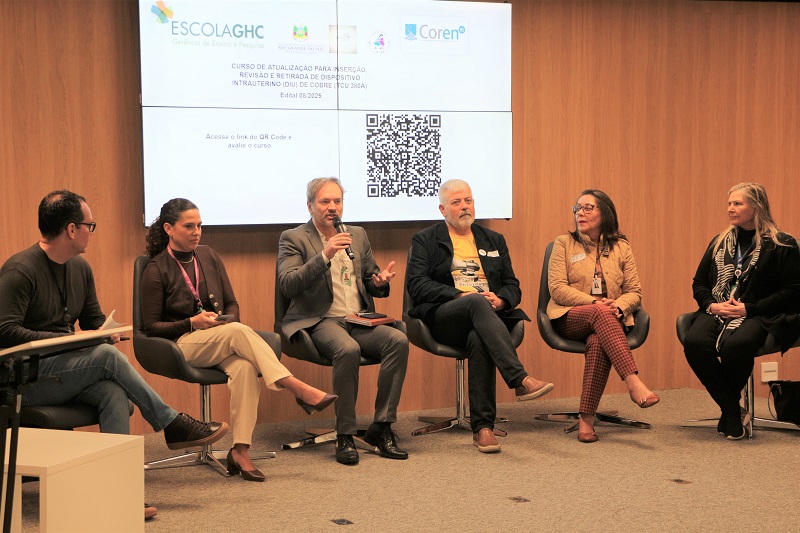 A mesa de abertura do evento foi composta pelo representante da Gerência de Ensino e Pesquisa do GHC, Rodrigo Azevedo, pelo presidente do Coren-RS, Antônio Ricardo Tolla da Silva, pela coordenadora das Câmaras Técnicas do Coren-RS, Rosane Mortari Ciconet, pela colaboradora no desenvolvimento do curso Rosemarie Flemming dos Reis e pela a líder do Grupo de Estudos da Linha de Cuidado Mãe-Bebê, Raquel Vieira Schuster. Desde a primeira edição, realizada em 2021, já foram ofertadas 145 vagas para profissionais de saúde, entre médicos e enfermeiros.