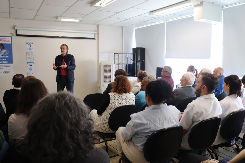 Na sequência, o gerente de Administração do HF, Cláudio Silva, apresentou um panorama do crescimento e dos avanços do SUS nas últimas décadas, relacionando-os à mobilização social que garantiu conquistas importantes. “O SUS é um patrimônio do Brasil e é assim que a gente deve tratá-lo, garantindo que ele seja respeitado, preservado e que a saúde efetivamente seja compreendida cada vez mais como direito fundamental”, disse. E também agradeceu aos conselheiros: “muito obrigado por estarem aqui. Parabéns pela luta de vocês, que é tão intensa e de tanto tempo”.