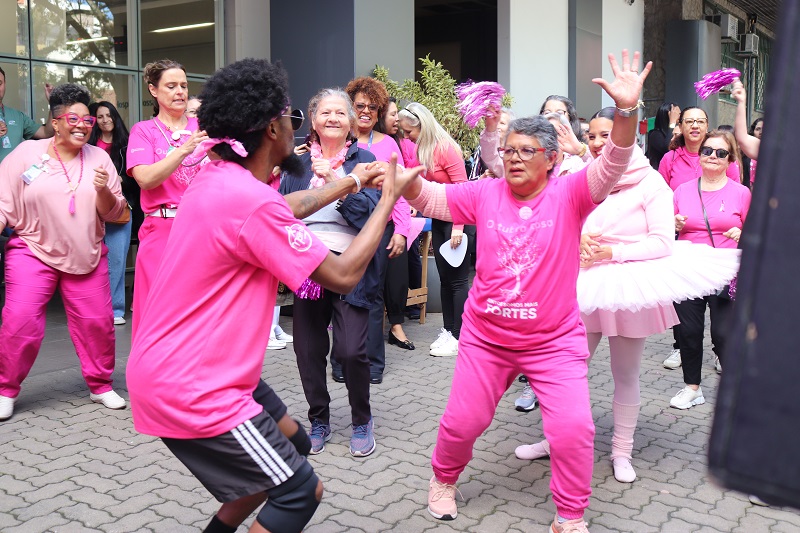Com música e exercícios físicos para o público, o Hospital Conceição (HNSC) abriu nesta terça-feira, 7 de outubro, as atividades do Outubro Rosa na instituição. A ação, organizada pelos serviços de Mastologia e Oncologia e voluntariado, visou promover saúde e chamar a atenção para a prevenção do câncer de mama, reunindo pacientes, funcionários e comunidade em geral. Com o tema “Ame-se, Cuide-se e Previna-se”, foi também distribuído material educativo sobre a doença.