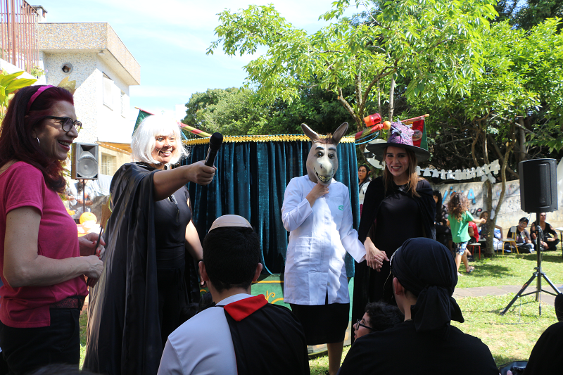 O evento começou com uma fala emocionada da coordenadora do CAPSij, Vanessa Machado da Costa, destacando a importância da equipe que desenvolve diariamente as atividades da unidade. Em seguida, pessoas que já participaram da história do Pandorga apareceram fantasiadas para que os usuários adivinhassem suas identidades.