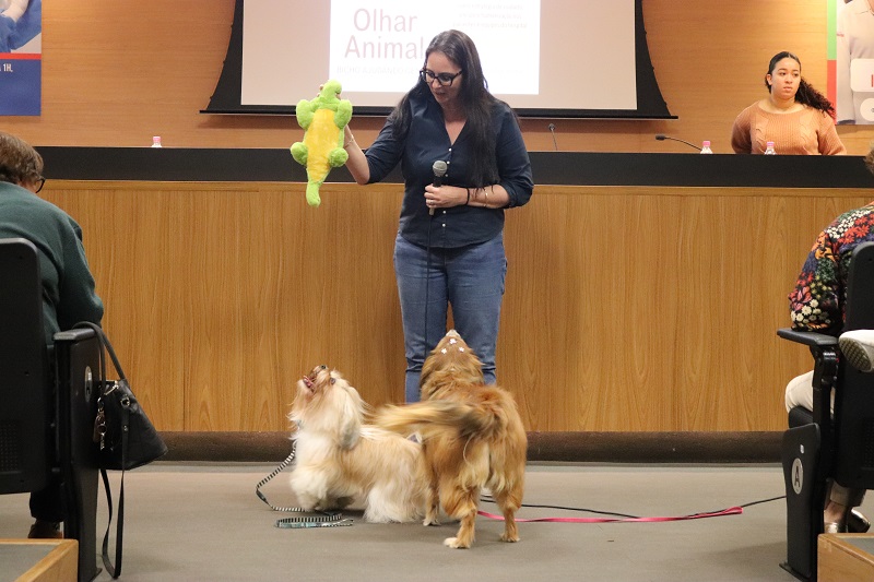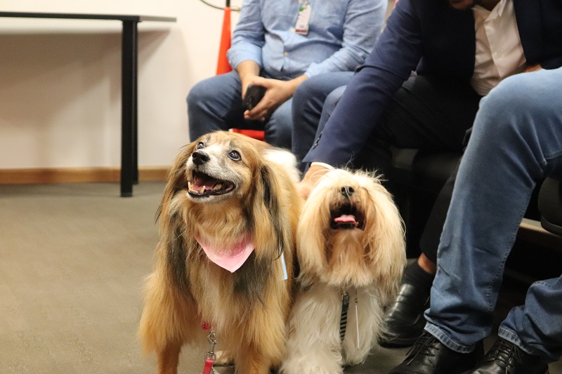Trabalhadores de diferentes unidades e setores do GHC participaram de evento, nesta quinta-feira (30), no Auditório Jahyr Boeira de Almeida, sobre os benefícios e o funcionamento da Terapia Assistida por Animais, popularmente chamada de Pet Terapia. Com a presença dos cães Alma e Coração, a psicóloga especialista na área Karina Schutz explicou como ocorre o treinamento dos animais, aspectos de saúde e higiene e as aplicações da terapia.