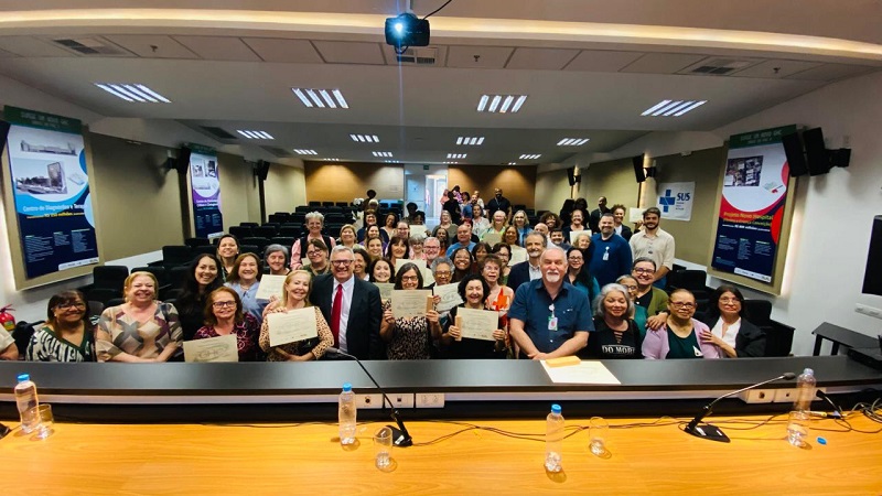Jorge Alberto Santiago Ferreira, farmacêutico bioquímico, atuou por 34 anos no GHC e relatou o desenvolvimento do laboratório da instituição. “Fomos o primeiro laboratório público certificado nacionalmente e também temos certificação internacional. Fico feliz em dizer que nosso laboratório é um orgulho no estado”, afirmou.