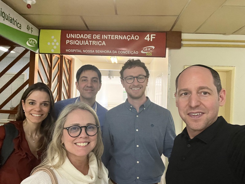 Participaram da recepção ao convidado internacional a professora Neusa Sica da Rocha (UFRGS), a psiquiatra Marianna Abreu Costa (UFRGS), o psiquiatra Bruno Paz Mosqueiro (GHC), o residente de psiquiatria Fernando Halperin (GHC) e a coordenadora do CAPS AD III GHC, Letícia Abruzzi Ghiggi.