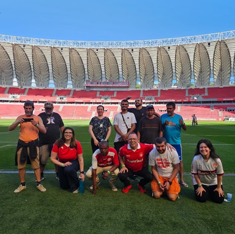 No dia 4 de novembro, pacientes do CAPS AD III do Grupo Hospitalar Conceição visitaram o Estádio Beira Rio do Sport Club Internacional em Porto Alegre, como parte do projeto de inclusão social e valorização dos esportes da unidade de saúde. O passeio foi realizado pelo grupo de atividades físicas do CAPS, coordenado pelo técnico em educação Fernando Santos Lerina, que foi acompanhado pelas enfermeiras Ana Cristina Monteiro Sanson Mallmann e Thielly Lima Vieira e pela assistente social Nathalia de Souza.