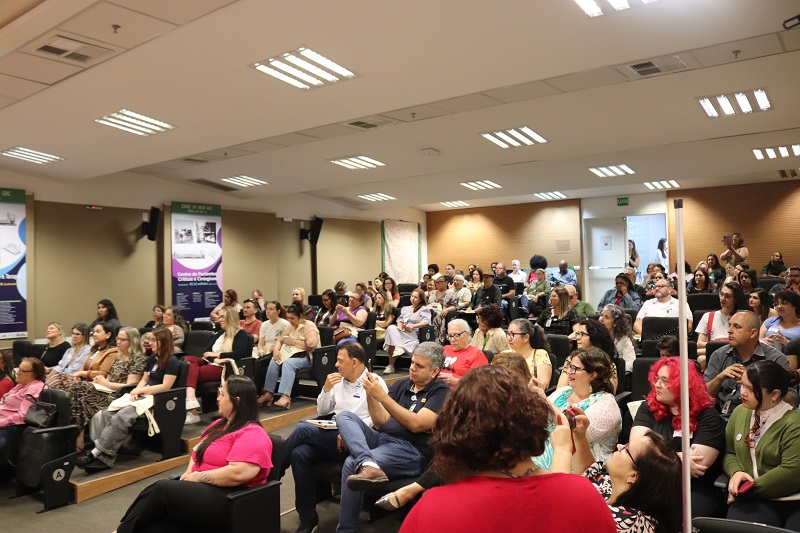 Com a apresentação da trabalhadora da instituição Sônia Bispo, o evento contou com música à capela. Também estiveram presentes na mesa de abertura a diretora de Inovação, Gestão do Trabalho e Educação do GHC, Quelen Tanize Alves da Silva, o representante da Secretaria de Gestão do Trabalho e da Educação na Saúde do Ministério da Saúde Marcos Pedrosa, a responsável técnica da UTI do Hospital Conceição, Rafaela Charão, e o gerente de Ensino e Pesquisa do GHC, Edenilson BomFim.