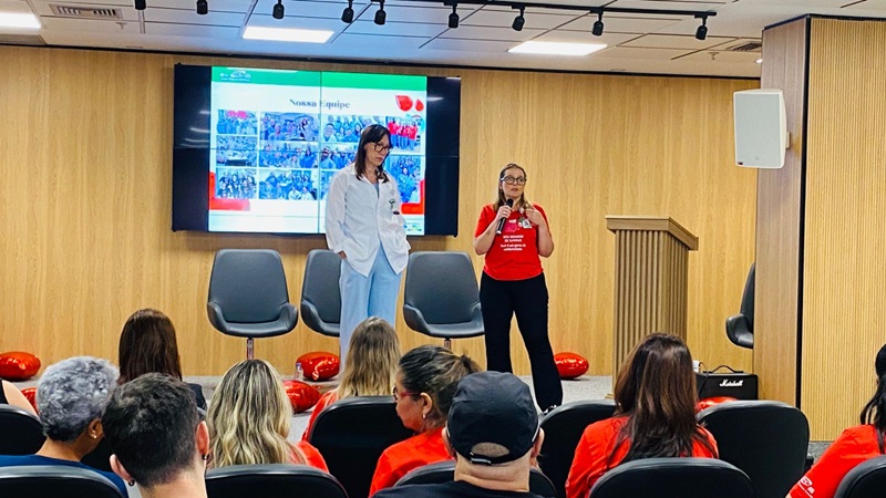 Pela tarde, a Agência Transfusional do Hospital Cristo Redentor realizou a primeira etapa do ciclo de palestras da Semana do Doador, destinada aos profissionais da instituição. A atividade contou com a presença da gerente de Internação do hospital, Fernanda Zanoto Kremer, e da gerente de SADT, Carolina Gasperin.
