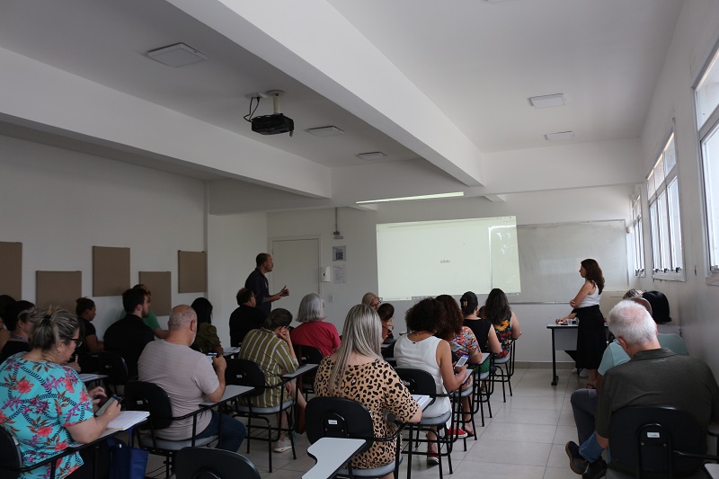 Ministraram o encontro a bibliotecária do GHC Luciane Benedetti, o analista e secretário da Escola GHC Gabriel Trevizan Corrêa e o programador da Gestão do Trabalho do GHC Clauvin Erlan Curty.