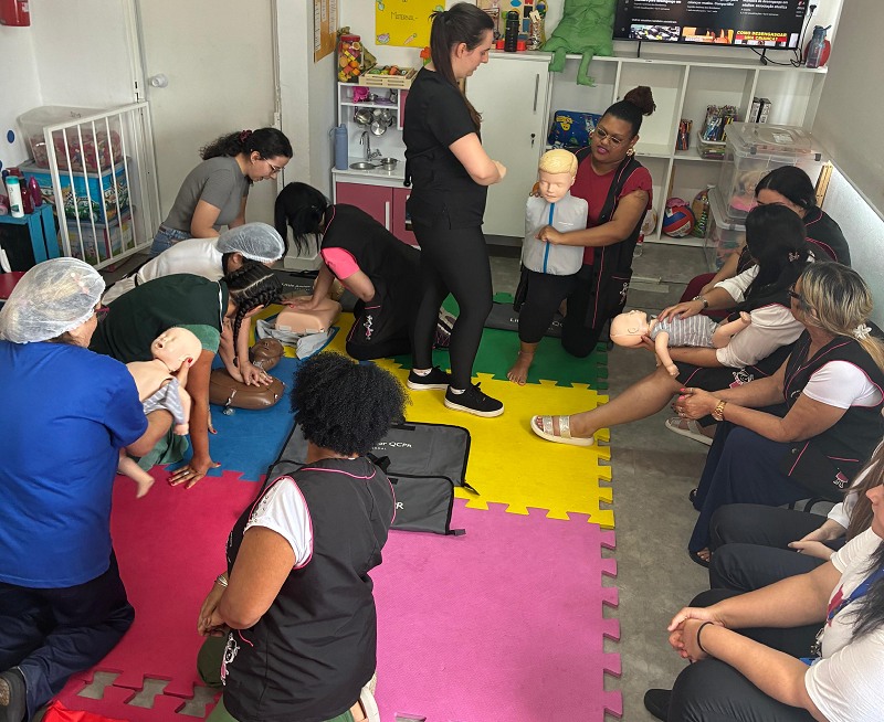 As professoras e demais funcionárias participaram ativamente das demonstrações e práticas realizadas com simuladores, adquirindo mais segurança e preparo para agir com rapidez e eficácia em situações que podem ocorrer no cotidiano escolar.
