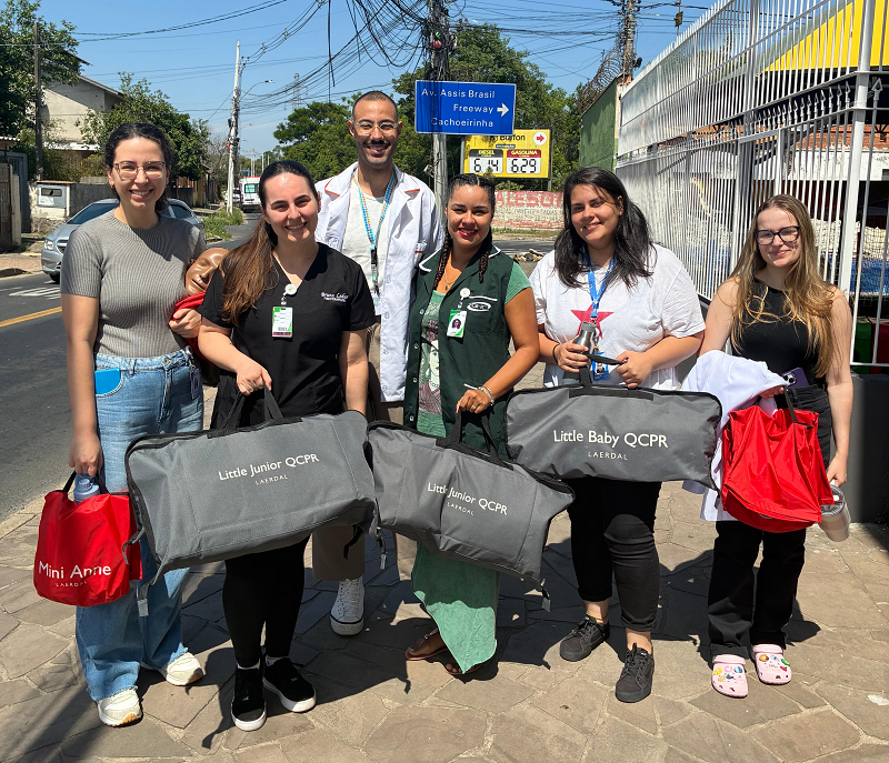 A Unidade de Saúde Nossa Senhora Aparecida, do Grupo Hospitalar Conceição, realizou, no dia 28 de novembro, uma ação do Programa Saúde na Escola (PSE), na Escola de Educação Infantil Trenzinho da Alegria. A atividade foi organizada em parceria com o Curso de Pós-graduação em Atenção Primária e-Multi Norte 1, com apoio da Escola GHC, que forneceu manequins para o treinamento de reanimação cardiopulmonar (RCP).