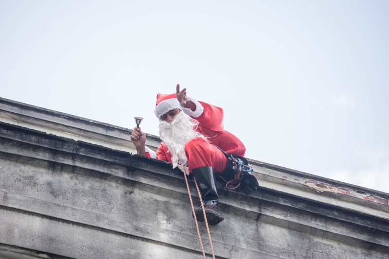 Pacientes, familiares e trabalhadores do Hospital Criança Conceição (HCC) receberam, nesta quinta-feira (11), a visita do Papai Noel e de quatro super-heróis. A turma, que participa das atividades festivas de fim de ano do Grupo Hospitalar Conceição (GHC), desceu de rapel pelos cinco andares do prédio, fazendo a alegria de quem estava no pátio e nos corredores. A ação é um trabalho voluntário da empresa Vértice, que já presta serviços para a instituição.