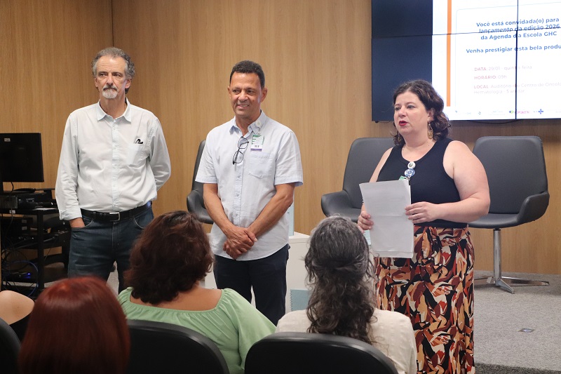 A cerimônia de lançamento da edição de 2026 da agenda da Escola GHC ocorreu nesta quinta-feira, 29 de janeiro, no Auditório do Centro de Oncologia e Hematologia do Grupo Hospitalar Conceição. No evento, estavam presentes o diretor administrativo e financeiro do GHC, João Motta, o gerente de Ensino e Pesquisa do GHC, Edenilson Bomfim da Silva, a coordenadora do evento e técnica em educação, Aline Zeller Branchi, junto de membros da Gerência de Ensino e Pesquisa e dos trabalhadores que tiveram suas fotos e poesias incluídas na agenda.