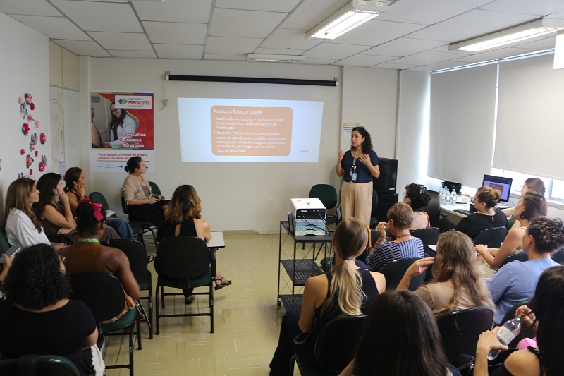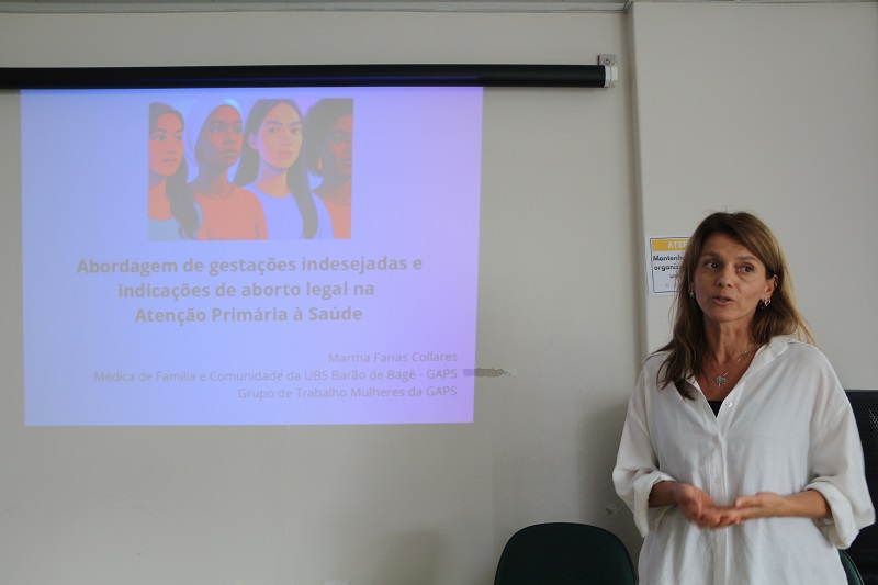 A capacitação foi ministrada pela ginecologista e obstetra do HF Carolina Pereira, pela médica de família e comunidade da GAPS Martha Collares, pela assistente social Lisiane Villeroy e pela psicóloga Amanda Sprenger, que trouxeram conceitos e dados básicos, protocolos de atendimento acolhedor e respeitoso e, finalizando, apresentaram alguns casos atendidos para debater com os participantes.