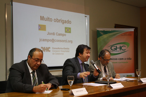 Nesta quinta-feira, 12 de dezembro, o Grupo Hospitalar Conceição (GHC) realizou a palestra “Gestão de Pacientes em Hospitais com Grandes Emergências” no auditório do Hospital Cristo Redentor. O gerente de Projetos do Consórcio Hospitalar da Catalunha para as Américas, Jordi Campo, foi quem ministrou o tema. Além do palestrante, fizeram parte da mesa de abertura o superintendente do GHC, Carlos Eduardo Nery Paes, e o secretário-executivo substituto do Ministério da Saúde e Presidente do Conselho de Administração do GHC, Adail de Almeida Rollo.