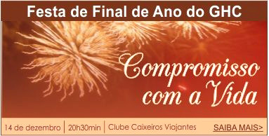 O Grupo Hospitalar Conceição (GHC) promove uma festa de final de ano, no dia 14 de dezembro, a partir das 20h30min, no Clube Caixeiros Viajantes (Rua Dona Laura, nº 646, bairro Rio Branco). O objetivo é proporcionar a confraternização dos trabalhadores da instituição. Na ocasião, 497 funcionários com anos de casa múltiplos de dez, que completaram ou completarão, em 2013, 10, 20, 30 ou 40 anos de colaboração com a empresa, serão homenageados.