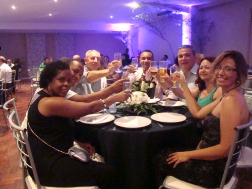 A festa de final de ano do Grupo Hospitalar Conceição (GHC), realizada neste sábado, dia 14 de dezembro, no Clube Caixeiros Viajantes, reuniu mais de 200 pessoas. Além das homenagens aos funcionários com 10, 20, 30 e 40 anos de trabalho na instituição, os convidados saborearam o ótimo jantar, seguido de sorteio de brindes e muita descontração na pista de dança. O diretor-superintendente do GHC, Carlos Eduardo Nery Paes, parabenizou os trabalhadores pela dedicação à instituição. “Este é um momento especial para o Grupo e serve também para refletirmos em relação a tudo que desenvolvemos ao longo do ano. Esta confraternização também nos remete aos muitos desafios que temos pela frente”.