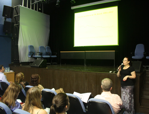 No dia 27 de março, o Grupo Hospitalar Conceição (GHC) promoveu uma palestra de atualização em tuberculose para as Unidades de Saúde do Serviço de Saúde Comunitária (SSC) da instituição, no auditório do Instituto da Criança com Diabetes (ICD). O evento foi organizado pelo SSC e pelo Serviço de Pneumologia do Hospital Conceição. A abertura do encontro foi realizada pelo gerente do SSC/GHC, Victor Fontanive, que falou sobre o trabalho das unidades e sobre os índices de tuberculose em Porto Alegre. Já a palestrante foi a coordenadora estadual do Programa da TB/RS, Carla Jarczewski, que compareceu ao evento para falar sobre o teste rápido para diagnóstico de TB e sua implantação no Rio Grande do Sul.