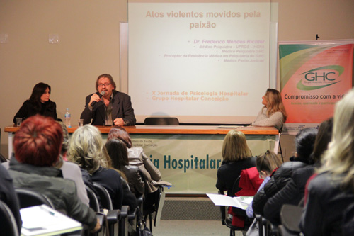 A mesa de abertura contou com as presenças do gerente de Internação do HCR, Walter Broock, do diretor técnico do GHC, Paulo Bobek, do diretor-superintendente do GHC, Carlos Eduardo Nery Paes, e da psicóloga do HCR Virgínia de Campos Carmona, uma das organizadoras do evento. Em seguida, “Atos Violentos Movidos pela Paixão” foi o tema coordenado pela psicóloga do Hospital Fêmina Mylène Geiger. Após um intervalo, deu-se continuidade com “Vulnerabilidades Consequentes ao Abandono”, “CASO M23: Os limites das Ações Psicoterapêuticas na Tetraplegia”, “Cortes na Pele: tentativas de inscrever uma separação?” e “O Trabalho da Psicologia nos Cuidados Paliativos”.