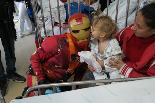 Muitos dos pequenos estão internados há meses no hospital e ficaram surpresos em ver os heróis das histórias em quadrinhos bem de perto. Após a descida, os alpinistas fantasiados entraram nos quartos, entregaram presentes e distribuíram a “supervitamina”, um lanche especial que, estimulando o imaginário infantil, tem o poder de dar força para vencer a doença. Elisabete Andrade, mãe de uma das meninas internadas, achou a iniciativa muito interessante para descontrair o ambiente para as crianças. “É uma coisa bem diferente pra eles”, disse a familiar.