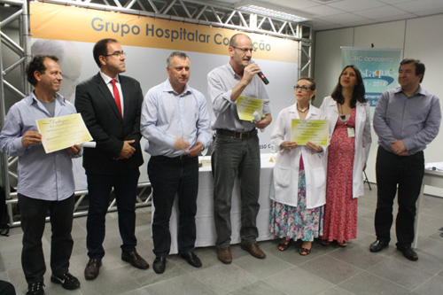 Em seguida, foi realizada a premiação dos serviços e trabalhadores do GHC. Mais de 50 foram agraciados. “Esse momento mostra que temos muita produção no Grupo”, disse o diretor técnico do GHC, Paulo Bobek. O diretor-superintendente, Carlos Eduardo Nery Paes, ressaltou que a ideia do evento foi “enxergarmos o que fazemos e que também é enxergado pelos outros”, referindo-se aos prêmios e reconhecimentos recebidos pelos profissionais. Já o diretor administrativo e financeiro, Gilberto Barichello, ao saudar a todos, parabenizou os que produzem conhecimento, principalmente em inovação tecnológica.