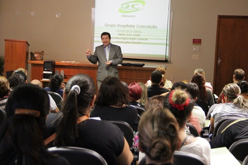 As boas-vindas à turma foi dada pelos diretores do GHC Carlos Eduardo Nery Paes e Gilberto Barichello. O gerente de Recursos Humanos do GHC, José Pedro da Luz, explicou, entre outros, sobre as iniciativas de democratização da gestão do Grupo como o Plano de Investimentos (PI), o Conselho Gestor e a Mesa Permanente de Negociação. A gerente de Administração do Hospital Cristo Redentor, Marinéia Roldão, também participou da recepção aos novos funcionários.