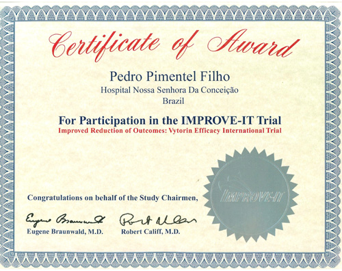 A Pesquisa Clínica da Cardiologia do Hospital Nossa Senhora Conceição (HNSC) foi certificada pelo renomado Grupo de Cardiologia de Boston (TIMI), dos Estados Unidos, pela participação no estudo multicêntrico mundial que avaliou a importância do tratamento redutor de colesterol na prevenção de infartos e na diminuição da mortalidade, chamado “IMPROVE-IT”. O trabalho coordenado pelo TIMI, sob a chancela do reconhecido cardiologista norte-americano Eugene Braunwald, envolveu 18 mil pacientes com histórico de infarto do miocárdio dos EUA, do Canadá e de países da América Latina, entre eles o Brasil, durante quase uma década.