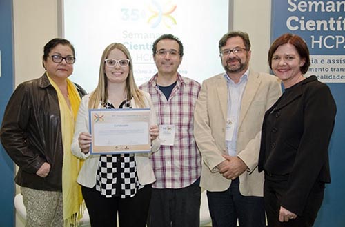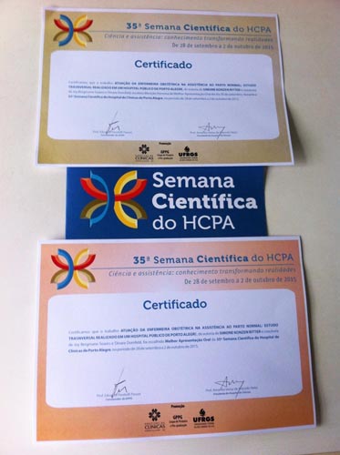 Um estudo sobre a atuação da enfermeira obstétrica, realizado no Centro Obstétrico do Hospital Conceição (HNSC), recebeu uma Menção Honrosa e a premiação de Melhor Apresentação Oral da 35ª Semana Científica do Hospital de Clínicas de Porto Alegre (HCPA), realizada de 28 de setembro a 2 de outubro. Da amostra de 385 parturientes acompanhadas pela equipe multiprofissional do Centro Obstétrico durante o trabalho de parto, parto e nascimento, no período de agosto a dezembro de 2014, 68 partos foram assistidos por enfermeiras obstétricas da instituição - 17,7% dos partos -, cujos resultados foram apresentados nesse estudo.